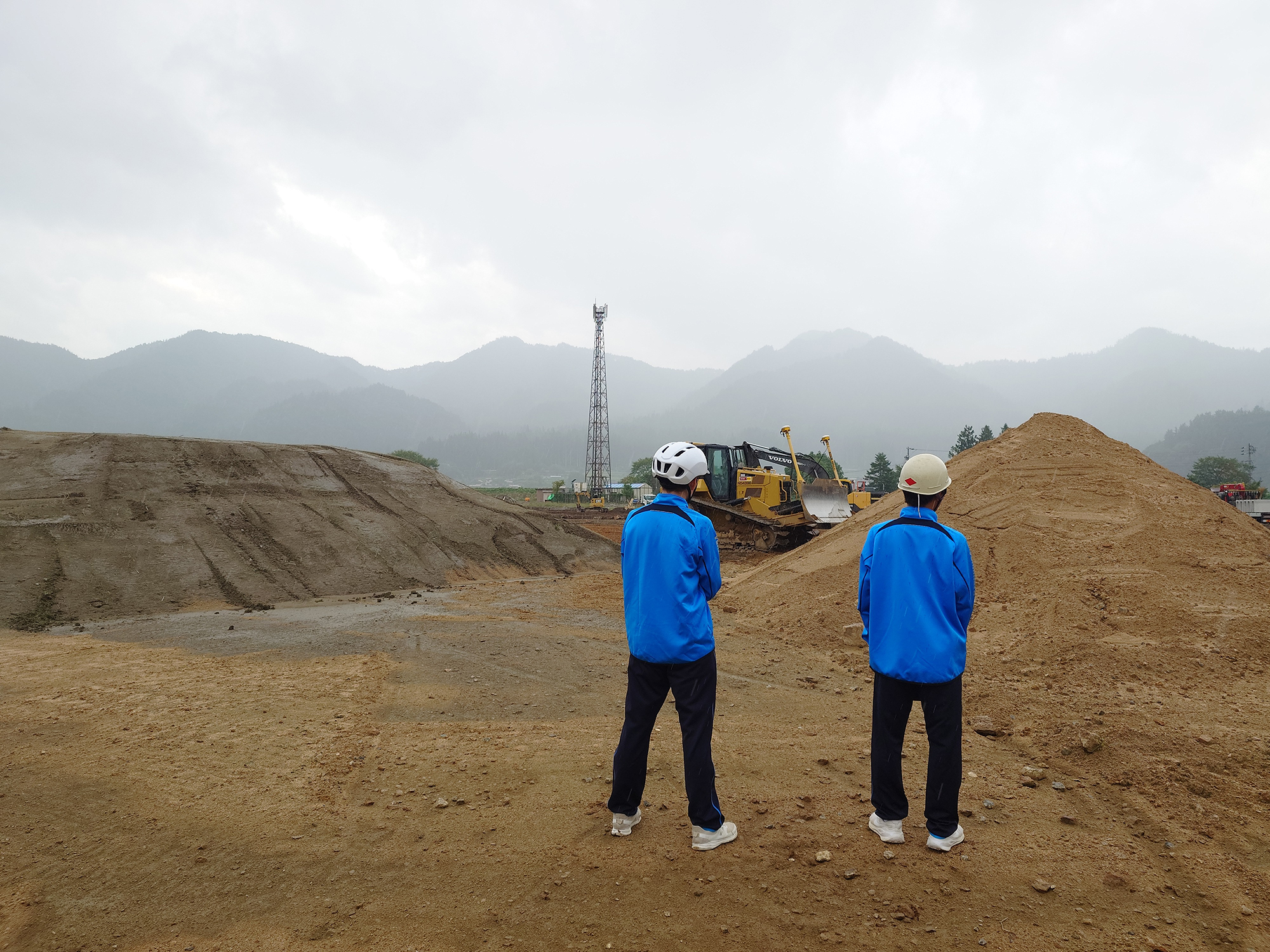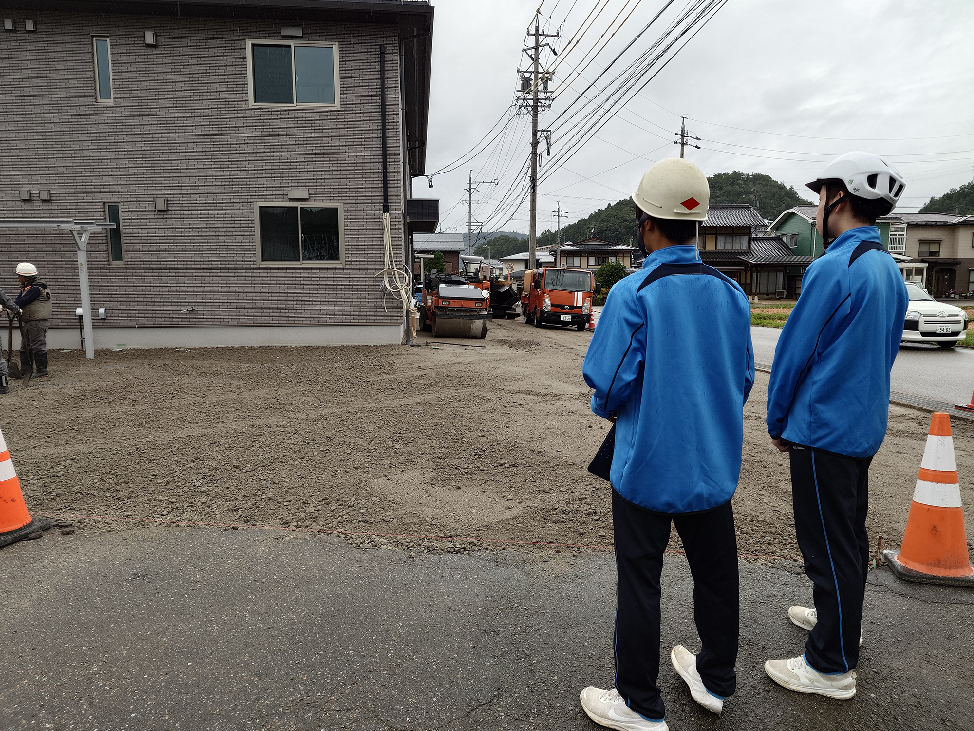 午前:飛騨市施工現場の見学。社内で仕事内容の説明。