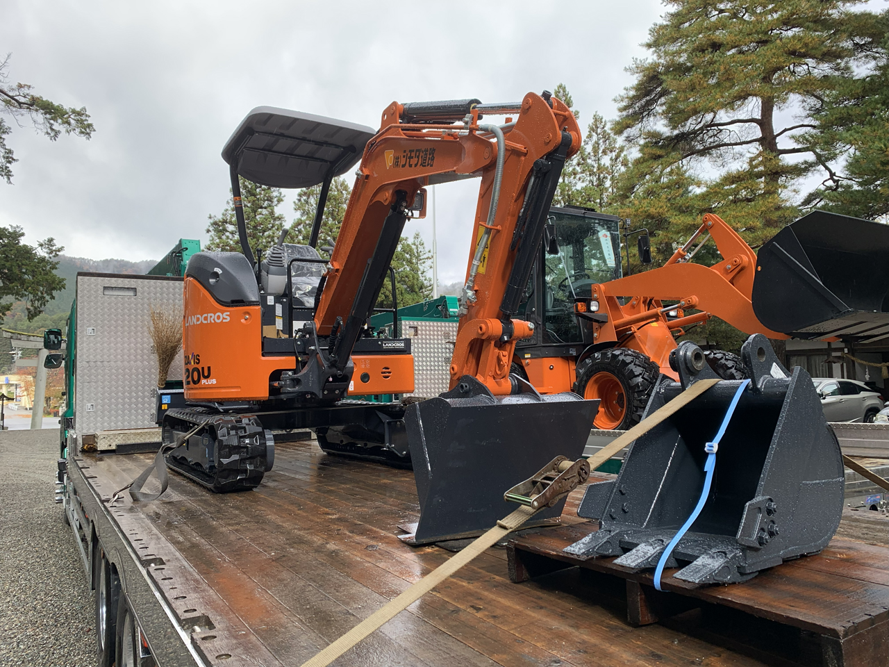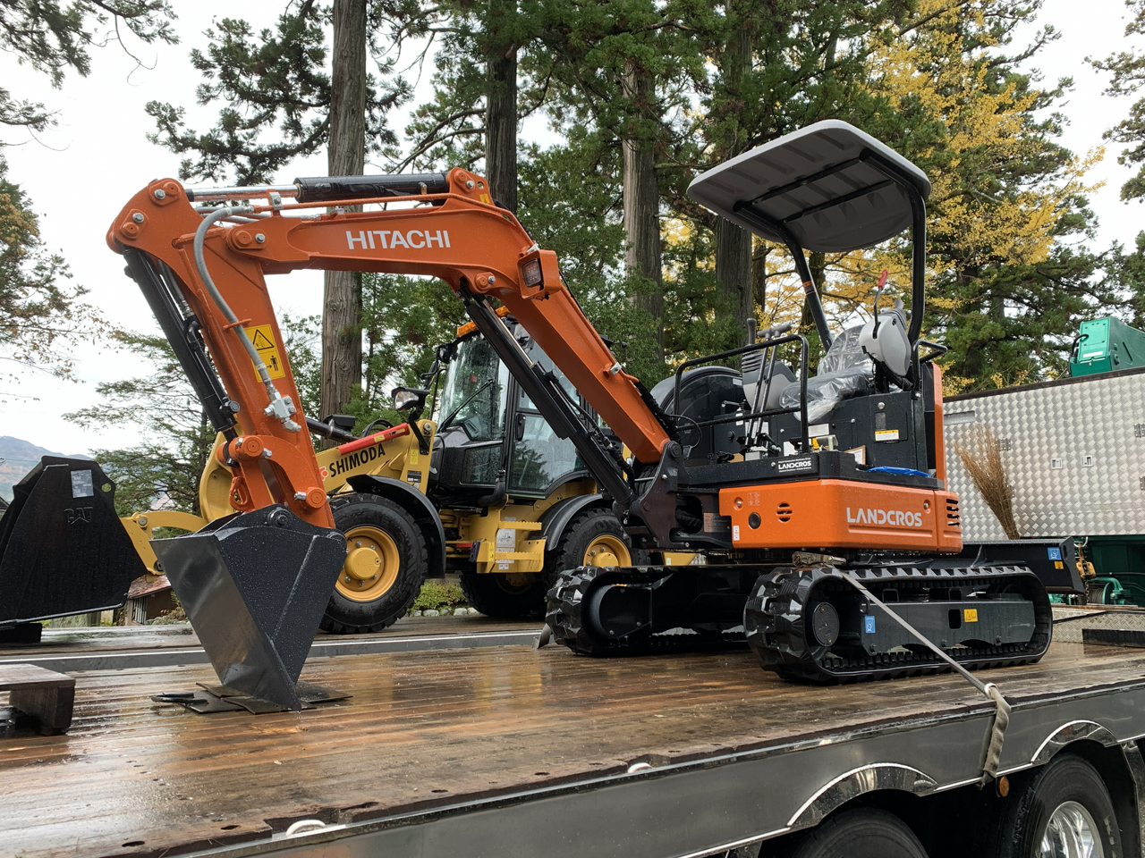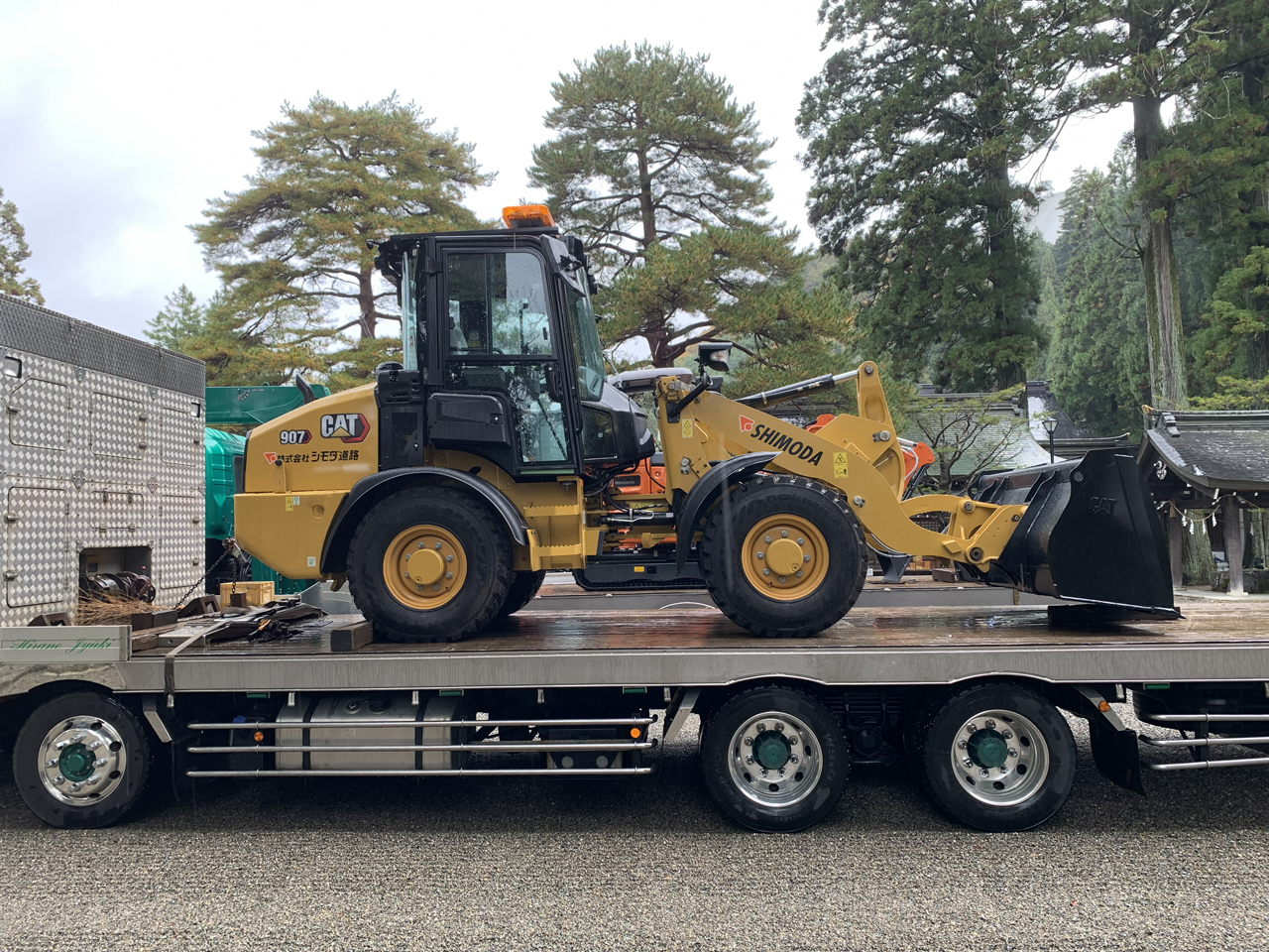 11月10日、シモダ道路では納車されたばかりのホールローダCAT907と日立建機ミニ油圧ショベルZX20Uの車祓いに行ってまいりました。
