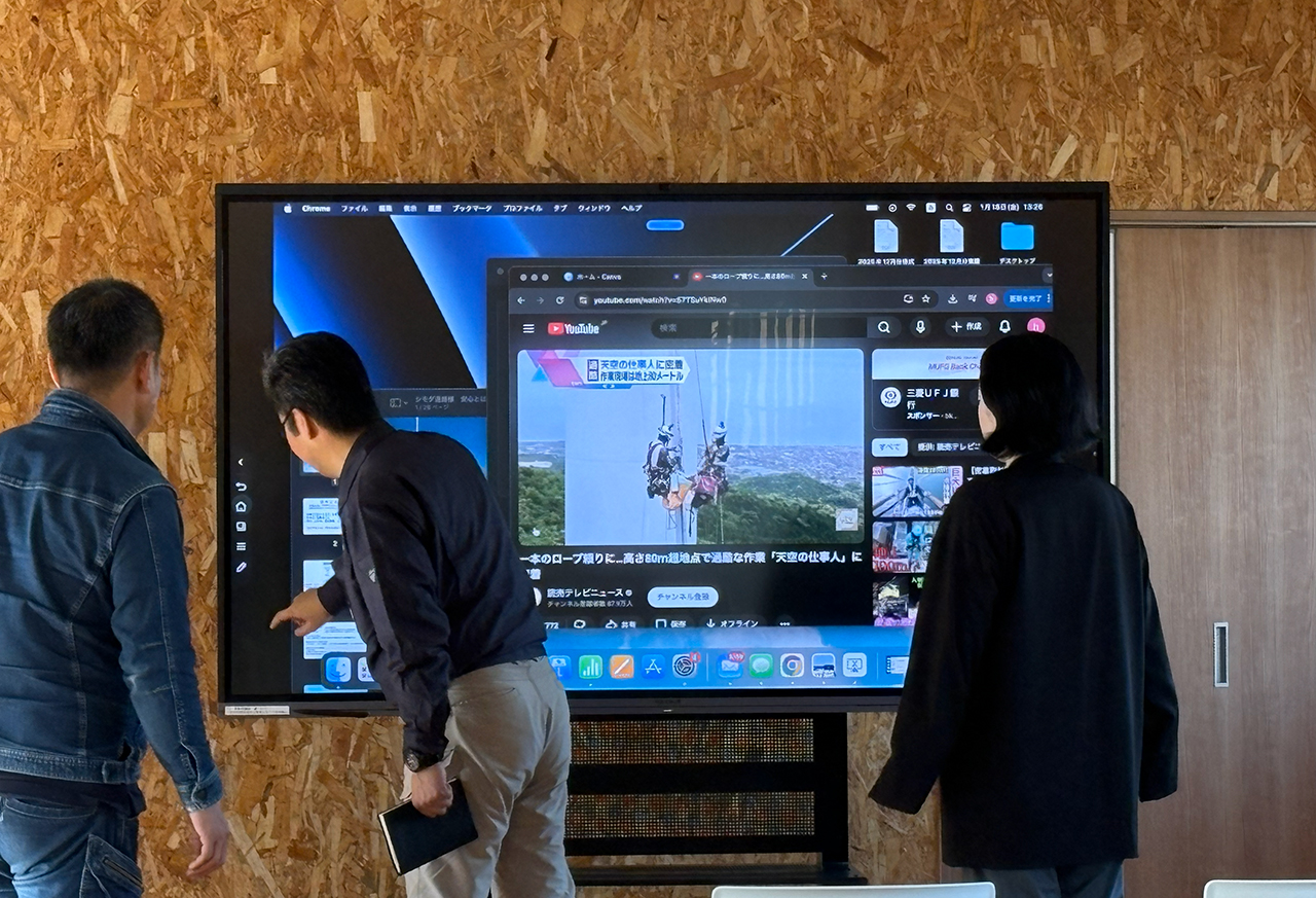 ㈱特殊高所技術さんのビデオ視聴を通して、現場での危険意識や行動判断の重要性について理解を深めました。